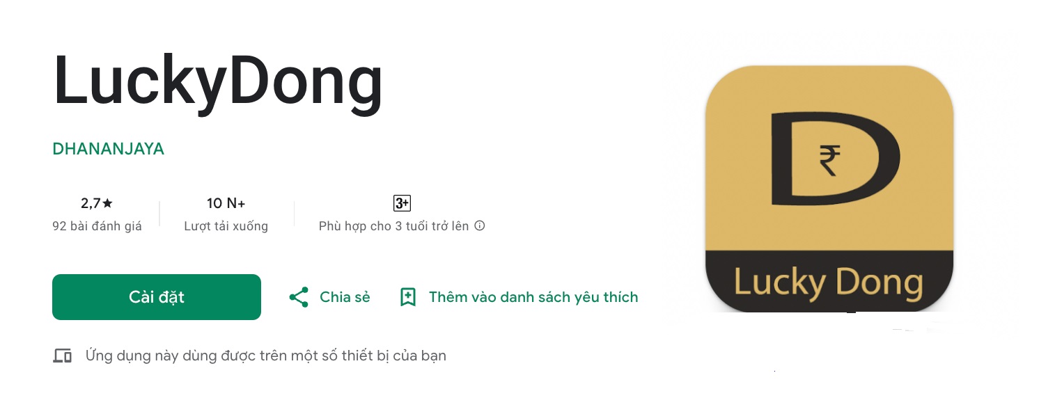 Luckydong chưa có các giấy phép kinh doanh cho công ty hoặc ứng dụng vay tiền. Khi tải, cài đặt bạn cần chú ý vấn đề bảo mật tài khoản và tín dụng đen trái phép.