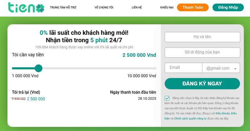TienO giải pháp dành cho các khách hàng đang cần các dịch vụ cho vay nhanh chóng và có tiền ngay lập tức cần tiền. Chỉ cần bạn cung cấp thông tin hệ thống sẽ đánh giá danh tính và lịch sử tín dụng và đưa ra tính khả thi của hồ sơ trong vài phút.